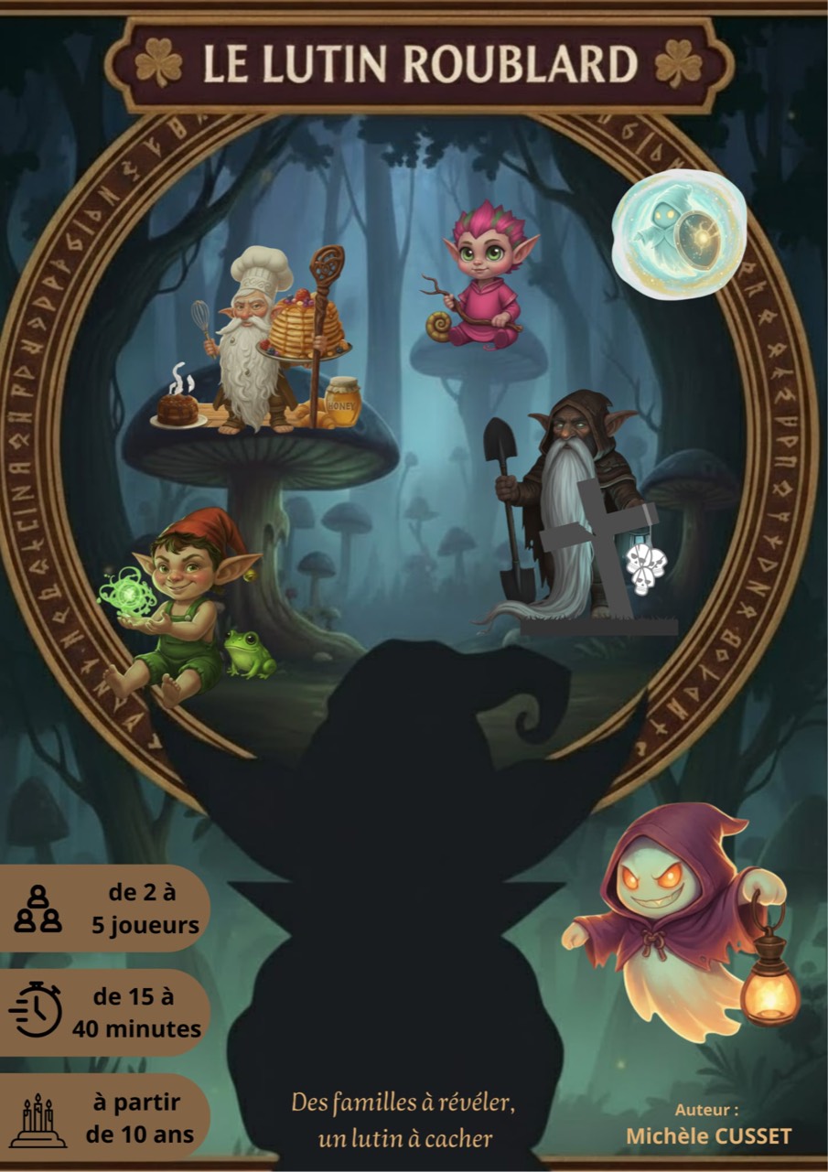 "Bienvenue dans l'univers chaotique, espiègle et stratégique du Lutin Roublard. Dans ce jeu mêlant familles mystérieuses, fantômes farceurs et manipulations habiles, seule l'intelligence (ou la malchance des autres) vous mènera à la victoire. Assemblez vos familles, déjouez les plans adverses et surtout… surveillez le Lutin Roublard."